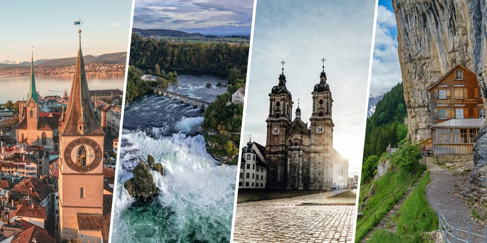 Der Auftakt führt von der Metropole Zürich durch das Zürcher Weinland mit seinen endlosen Rebbergen. Ländlicher Charme begleitet die Route bis zum tosenden Rheinfall von Schaffhausen, bevor mit dem Stiftsbezirk St. Gallen das erste UNESCO-Weltkulturerbe der Tour wartet. Nur wenige Autominuten später nähern Sie sich bereits dem Etappenziel: Das Appenzell mit seinen grünen Hügeln und bunten Häusern hat großes Potenzial für die Liebe auf den ersten Blick.