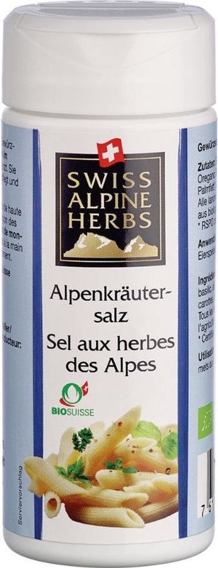 Die harmonisch-abgestimmte, ausgewogene Kräutersalzmischung aus reinem Alpensalz aus den Salzminen von Bex und aromatischen Bio Gewürzkräutern wie zB. Petersilie, Oregano, Basilikum, Gemüse, Knoblauch und Gewürzen besticht durch einen milden, aromatischen Geschmack.