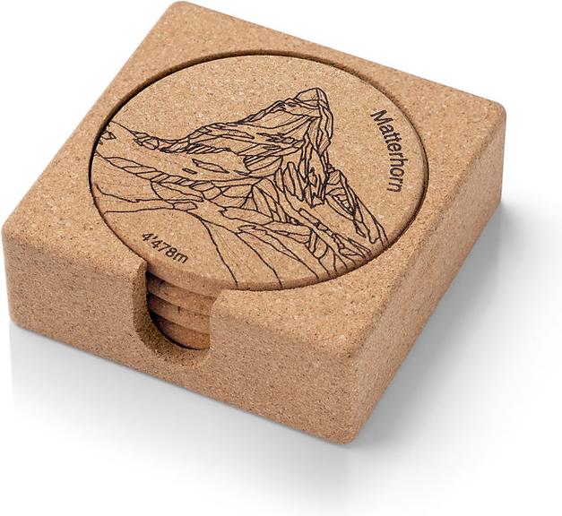 Das Set enthält 4 hochwertige Korkuntersetzer, die dick und stabil sind und somit ideale Begleiter für Ihre Alpinte-Gläser darstellen. Sie verfügen über lasergravierte Illustrationen des Matterhorns, die exklusiv von der Schweizer Künstlerin Corinne Weidmann für Alpinte angefertigt wurden. Die praktische Aufbewahrung erfolgt in einer schönen Kiste.