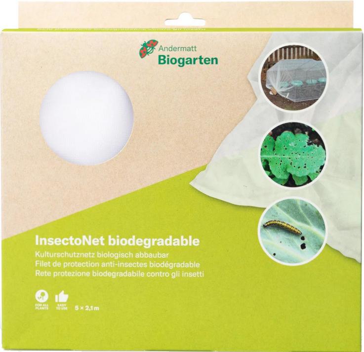 Feinmaschiges Insektenschutznetz (Maschenweite 0,85 mm, Gewicht 32 g/m2) aus biologisch abbaubarem Bioplastik (PLA). Die Wasserdurchlässigkeit liegt bei 75%, der Schattierwert bei 12%.Hergestellt aus nachwachsenden Rohstoffen.