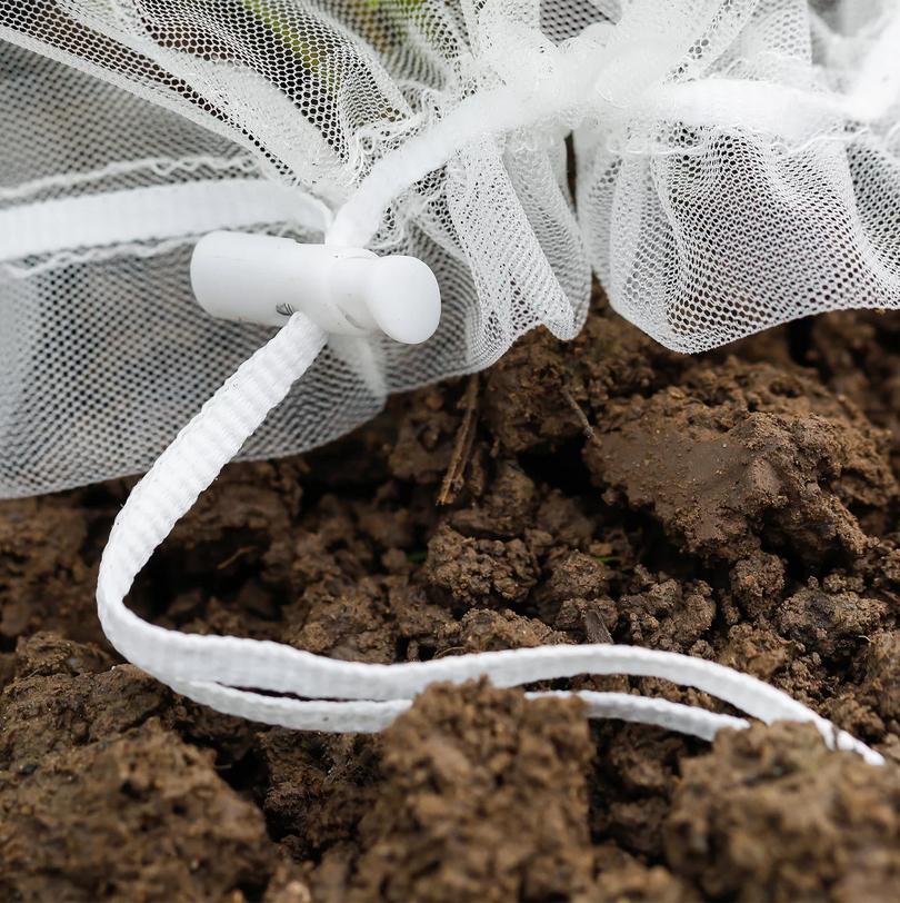 - Einfachste Handhabung: Kein mühsames Zuschneiden von großen Netzen! Stülpen Sie die Tasche einfach über den Setzling oder die Pflanze und ziehen Sie die Kordel am Stängel fest. Fertig.