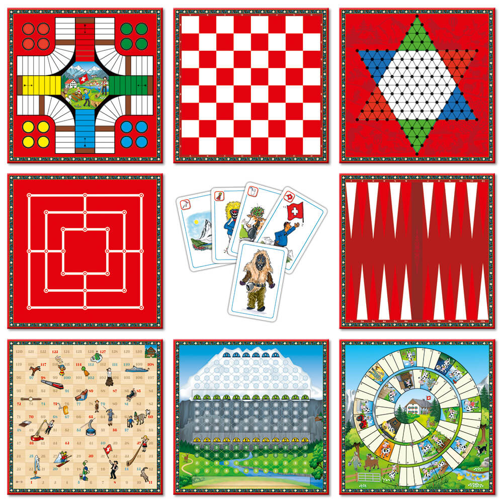 Die beliebtesten Spieleklassiker im einzigartigen Schweizer Design. Freuen Sie sich auf Schweizer Leiterli, Kuhspiel, Bergsteigerspiel, Eile mit Weile, Halma, Dame, Backgammon, Mühle und Schwarzer Peter. Ein perfekter Spielspaß für die ganze Familie mit hochwertigem Spielmaterial und ausführlicher Spielanleitung.