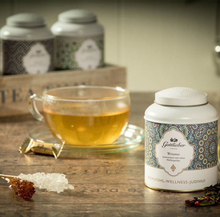 Entdecken Sie den göttlichen Genuss des Gottlieber Wohlfühl-Wellness-Judihui. Dieser aromatisierte Weißtee mit roten Pfefferperlen ist delikat, zeitlos und leicht pikant. Ein ultimatives Wohlfühl-Wellness-Erlebnis für Ihre Sinne.