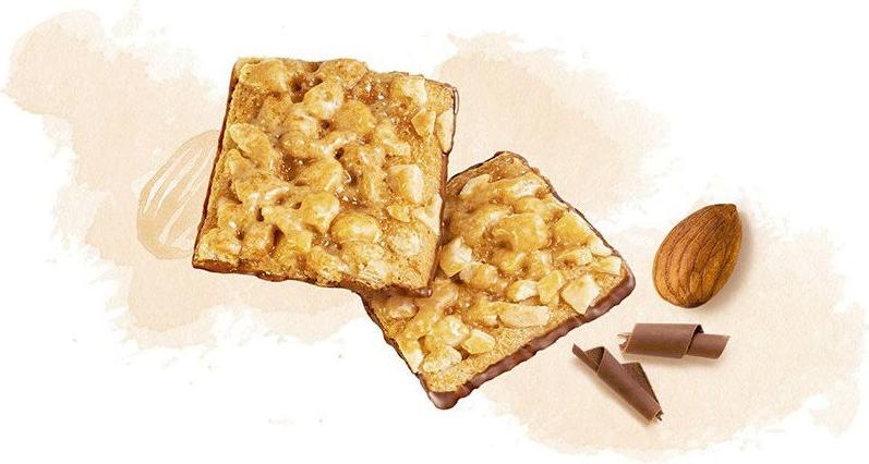 Delikates Feingebäck mit karamellisierten Mandeln und Milchschokolade. Die köstliche Kombination verleiht dem Gebäck einen knusprigen Biss und einen herrlichen Geschmack. Genießen Sie diesen feinen Leckerbissen als köstliche Begleitung zum Kaffee oder Tee oder einfach als süße Versuchung zwischendurch.