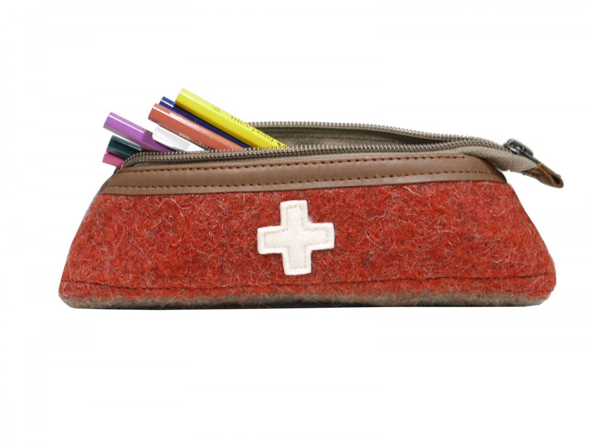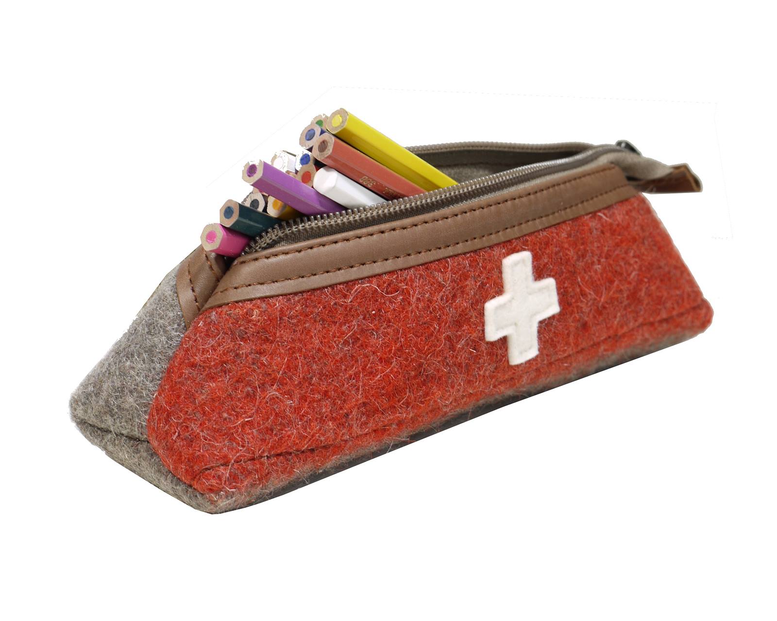 Ein Etui kann auch ganz schön edel aussehen. Jedenfalls fühlen sich Farbstifte, Schminkstifte oder sogar Brillen wie Königinnen in diesem Etui. Damit es auch lange schön bleibt, ist der Innenstoff abwaschbar und der Außenstoff aus original Schweizer Armeedecken.