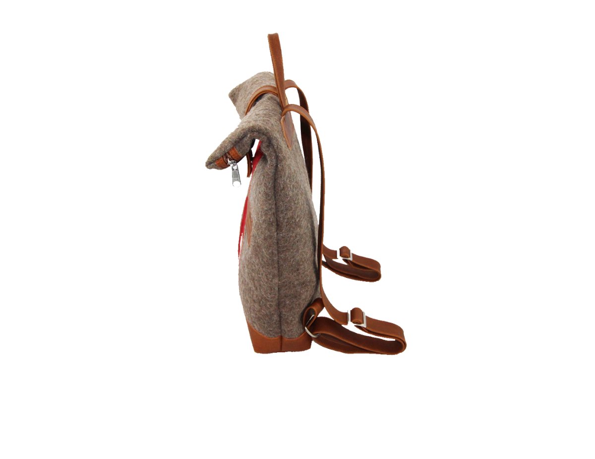 Robuster, modischer Rucksack mit Tragehenkel. Träger aus Leder verstellbar. Die Höhe kann mit dem Umschlag variiert werden. Heißt umschlagen oder auch mal nicht, wenn etwas Längeres mit soll - einfach praktisch. Hauptfach ist mit Reißverschluss verschließbar. Die Außentasche macht den Rucksack noch beliebter. Last but not least - das Material. Das war mal eine original Schweizer-Armee-Decke. Einzigartig, robust. Ein Rucksack mit Stil und Vergangenheit.