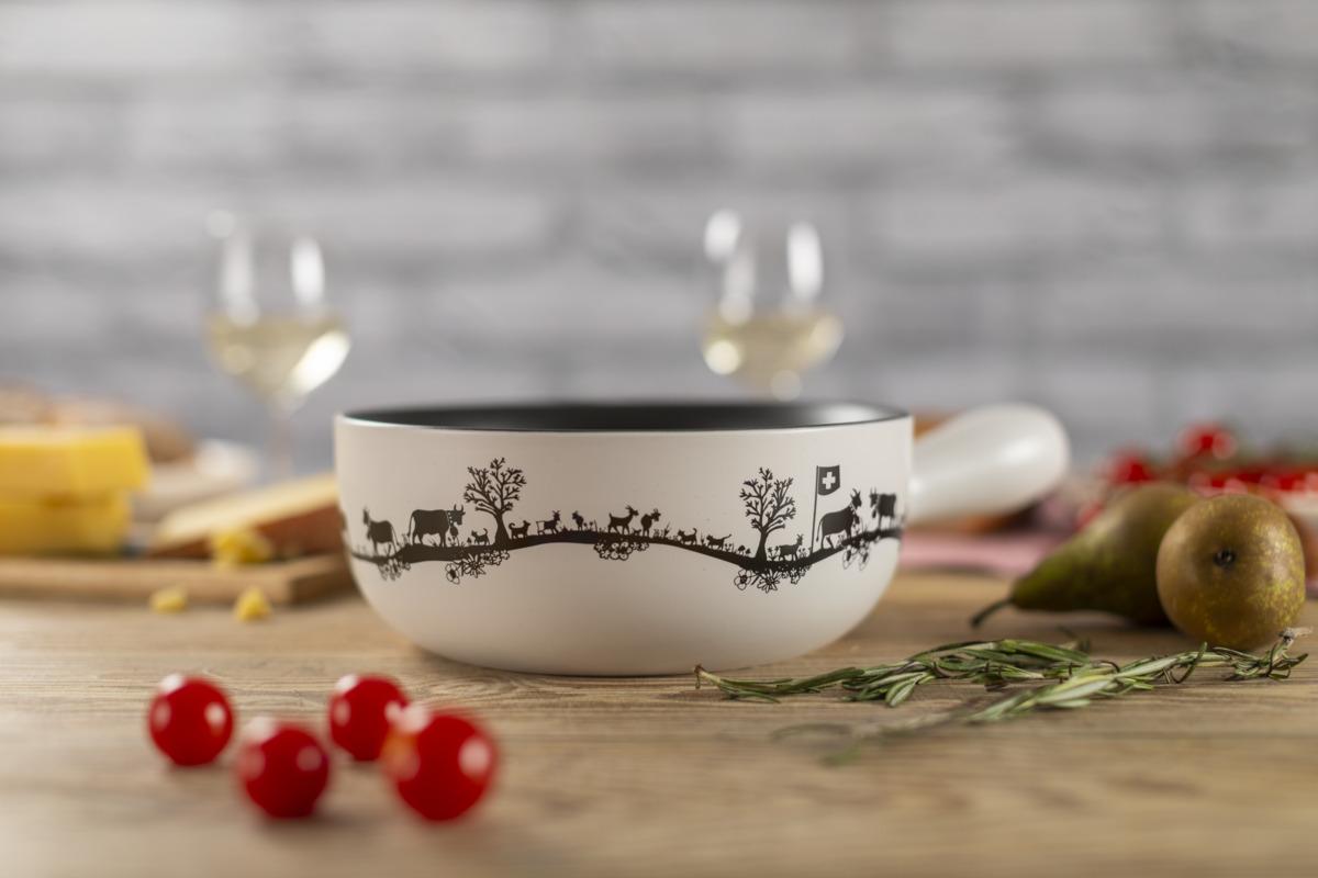 Hergestellt aus hochwertigem Ton und von Hand gefertigt. Der klassische Caquelon im stilvollem Design. Für alle, die sich ein Stück Schweizer Authentizität auf den Tisch holen möchten.