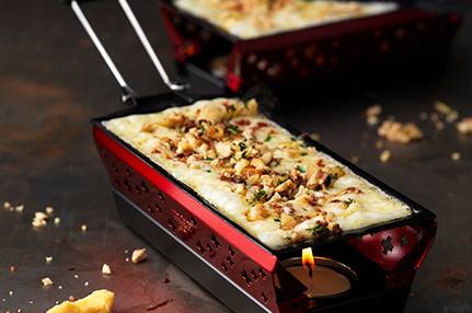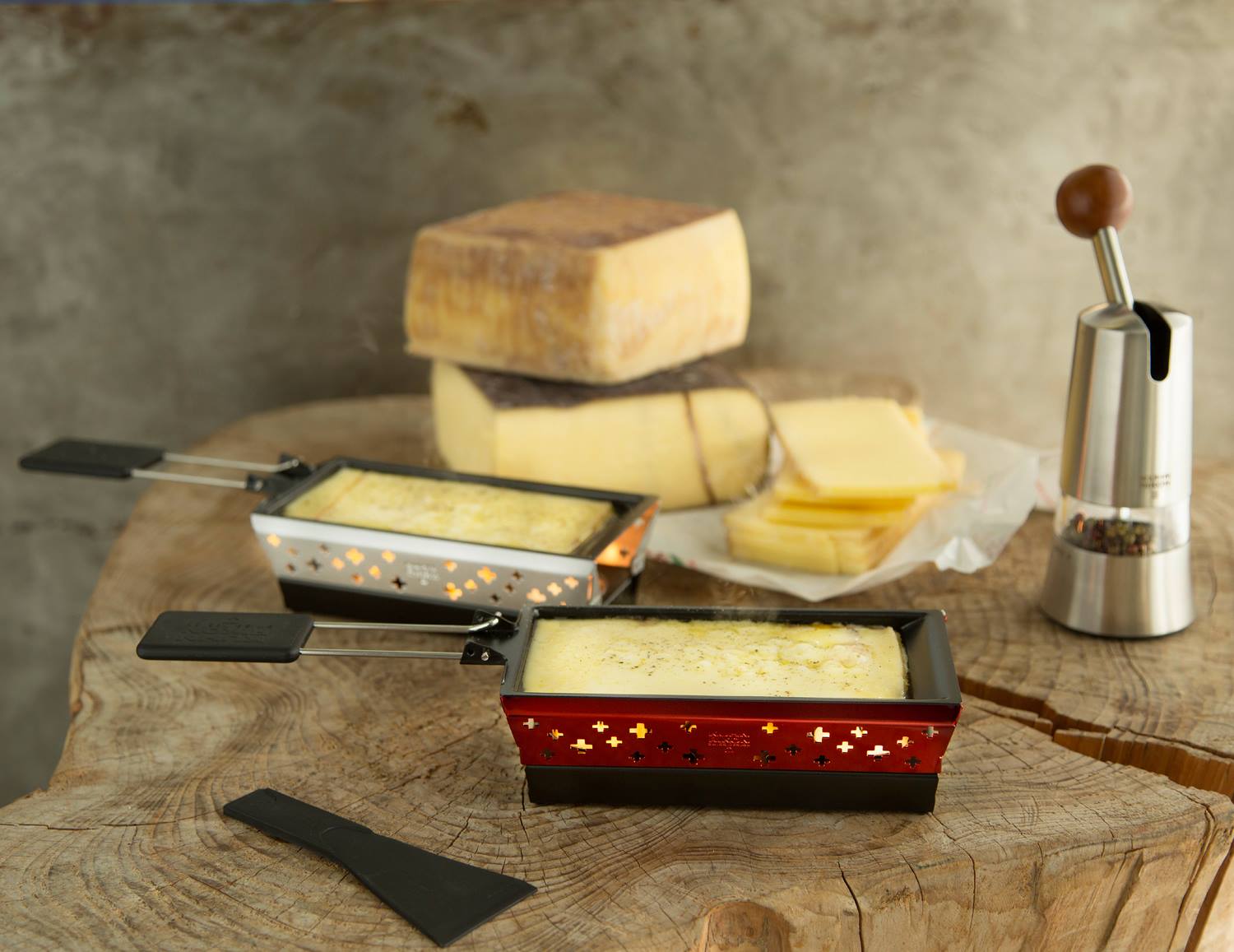 Ein Genuss bei Kerzenlicht - das individuelle Mini-Raclette-Set in dem Design "Schweiz" für einzigartigen Raclette-Genuss: