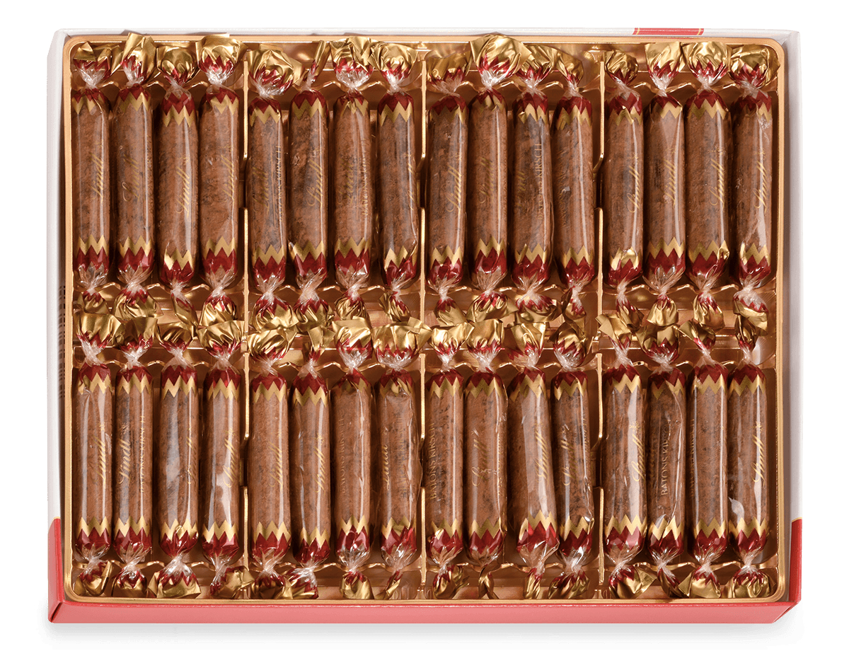 Zarte Schokoladen-Stengeli, gefüllt mit flüssigem Schweizer Kirsch. Genießen Sie ein außergewöhnliches Geschmackserlebnis der ganz besonderen Art.