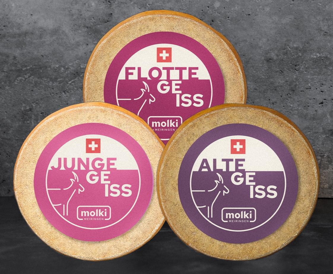 Das „Geiss-Trio“ besteht aus den drei Ziegen-Halbhartkäse "Junge Geiss", "Flotte Geiss" und "Alte Geiss". Bei einem Glas Weißwein oder frischem Brot lässt sich ihr besonders feiner, würziger Geschmack in den drei unterschiedlichen Reifestufen am besten erleben.