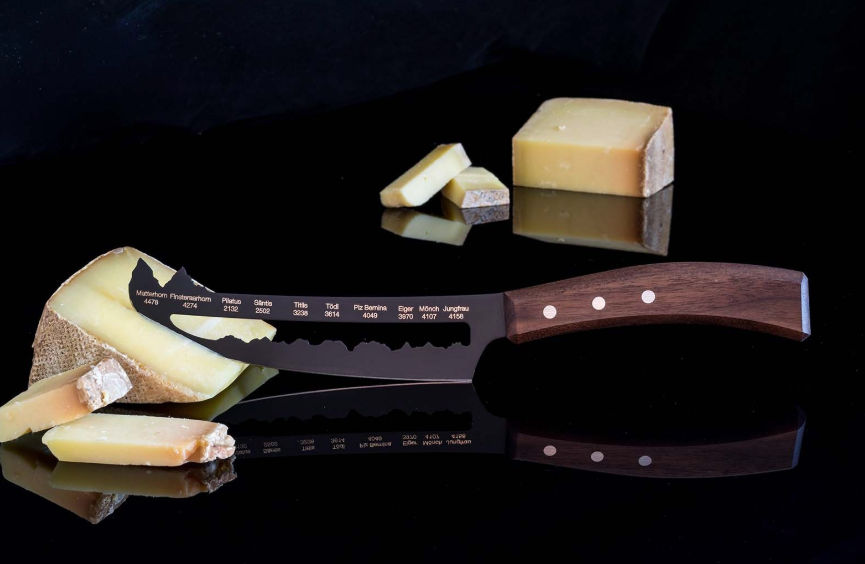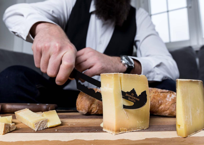 Egal ob beim Frühstück, zum Abendessen oder als Dessert – Schweizer Käse geht einfach immer. Besonders gut schneiden lässt sich der Käse mit dem PanoramaKnife «Best of Switzerland». Dieses einzigartige Käsemesser ist ein beliebtes Mitbringsel für Käse-Gourmets. Mit der neuen Teflon-Klinge des PanoramaKnife sieht auch der Weichkäse nach dem Schneiden noch aus wie neu. Dank der Aussparung bleibt der Käse nicht am Messer kleben. Die Teflonbeschichtung verspricht ein Höchstmaß an Funktionalität und ermöglicht so einen besonders sauberen Schnitt.