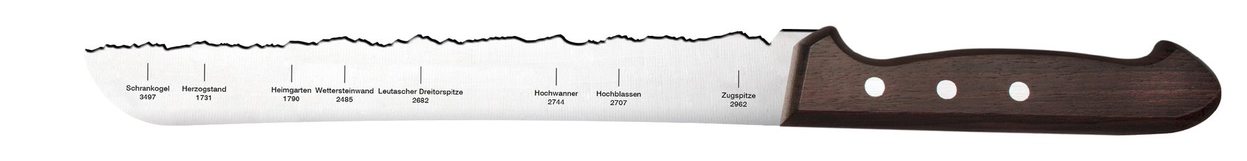 Eine schönere Aussicht beim Schneiden gibt es kaum! Die Messerklinge bildet, neben der Zugspitze, noch andere Schweizer Berge ab.