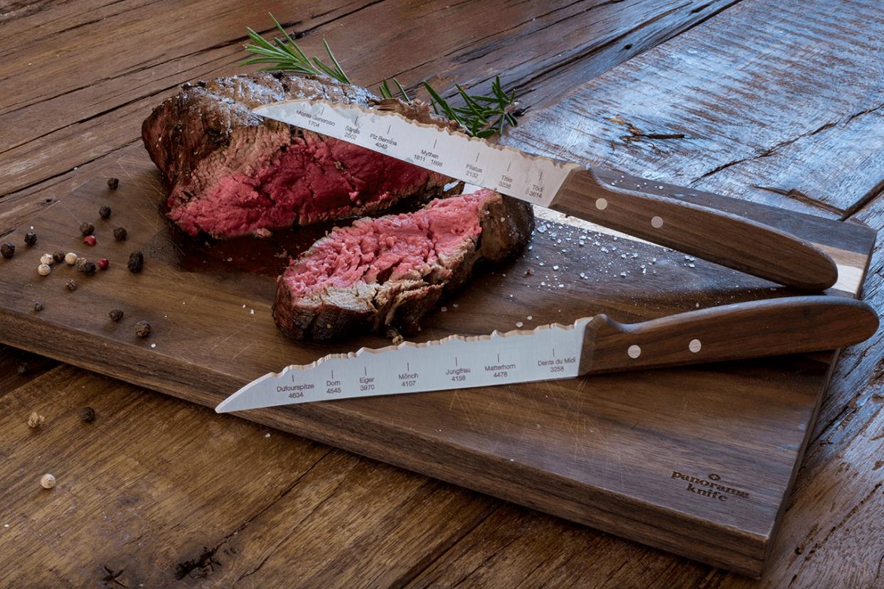 Viel hilft manchmal doch viel! Mit der vergrößerten Klinge der Steak- & Pizzamesser von Panoramaknife, können Sie ab sofort mühelos große Stücke ganz einfach zerkleinern und mit einem sauberen Schnitt durchtrennen.