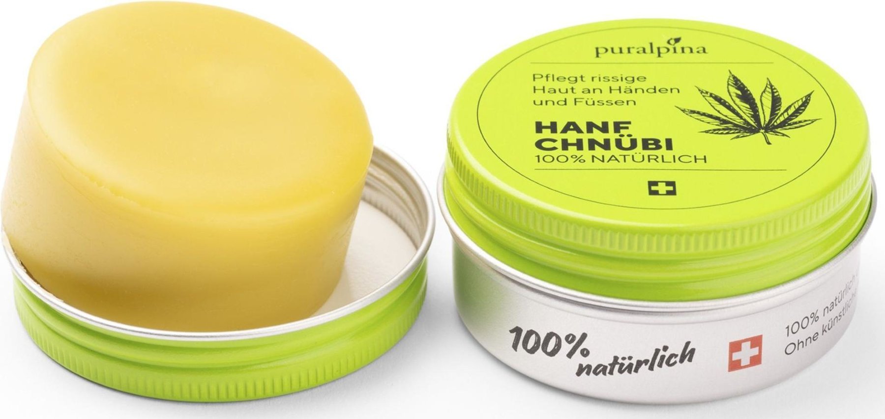 Puralpina Hanf-Chnübi enthält keine künstlichen Zusätze. Es sind keine Paraffine oder andere Erdölderivate sowie keine künstlichen Konservierungs-, Duft- oder Farbstoffe enthalten.