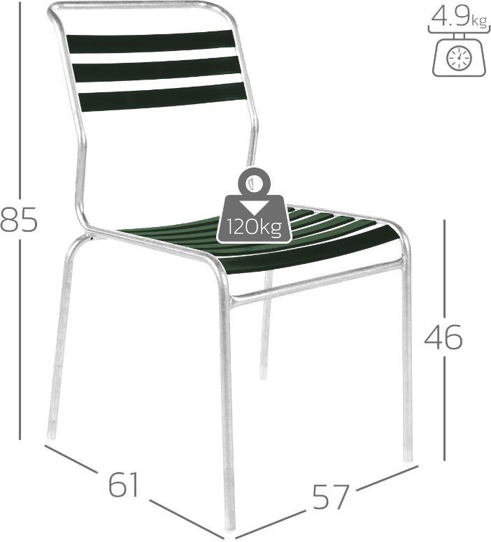 Trotz ihrer Leichtigkeit sind die filigranen Stühle sehr stabil und stapelbar. Die Latten im PVC-Profil auf der Sitzfläche und an der kurzen Rückenlehne bieten eine außerordentlich komfortable Sitzgelegenheit und sind durch ihre robuste Wetterfestigkeit auch einfach zu reinigen.