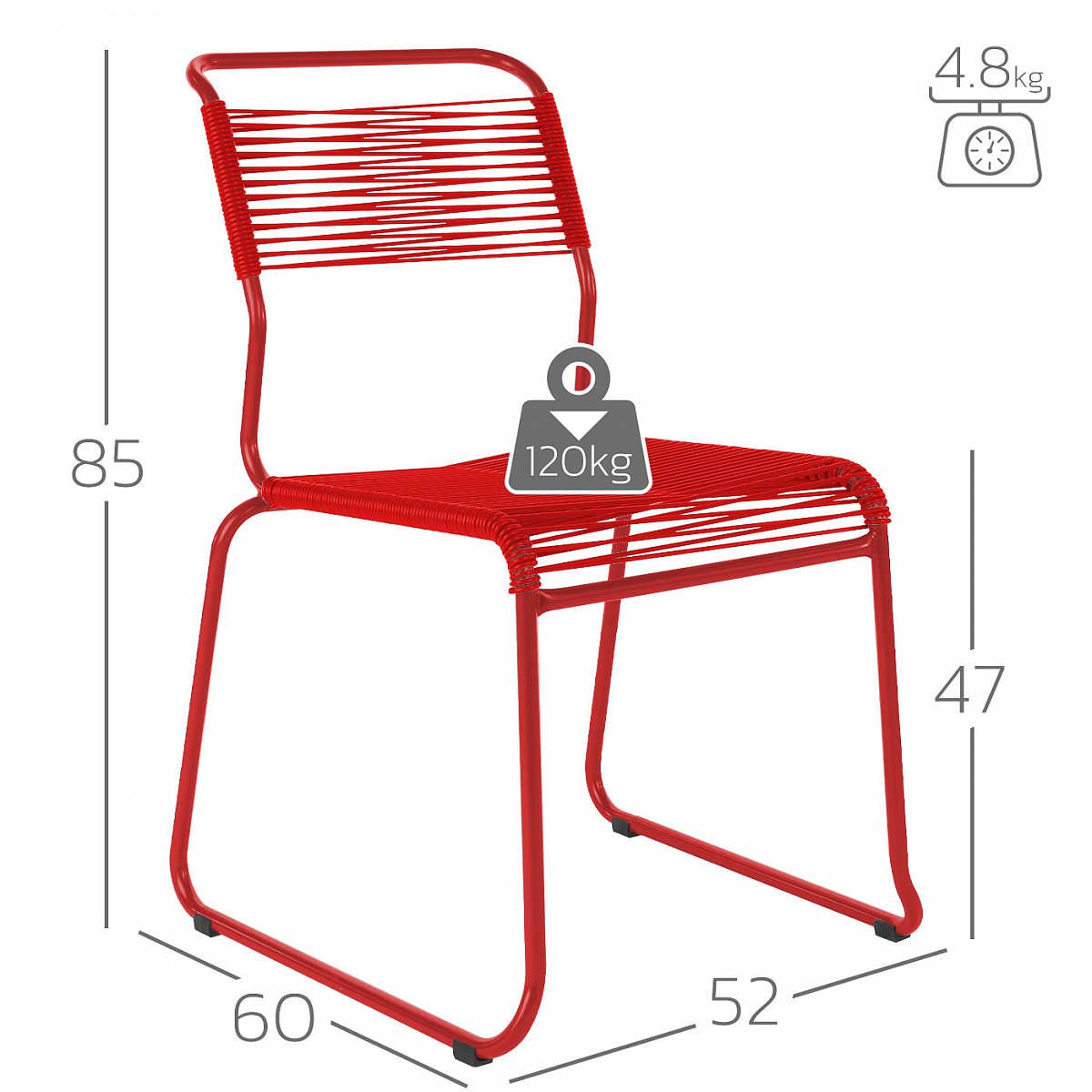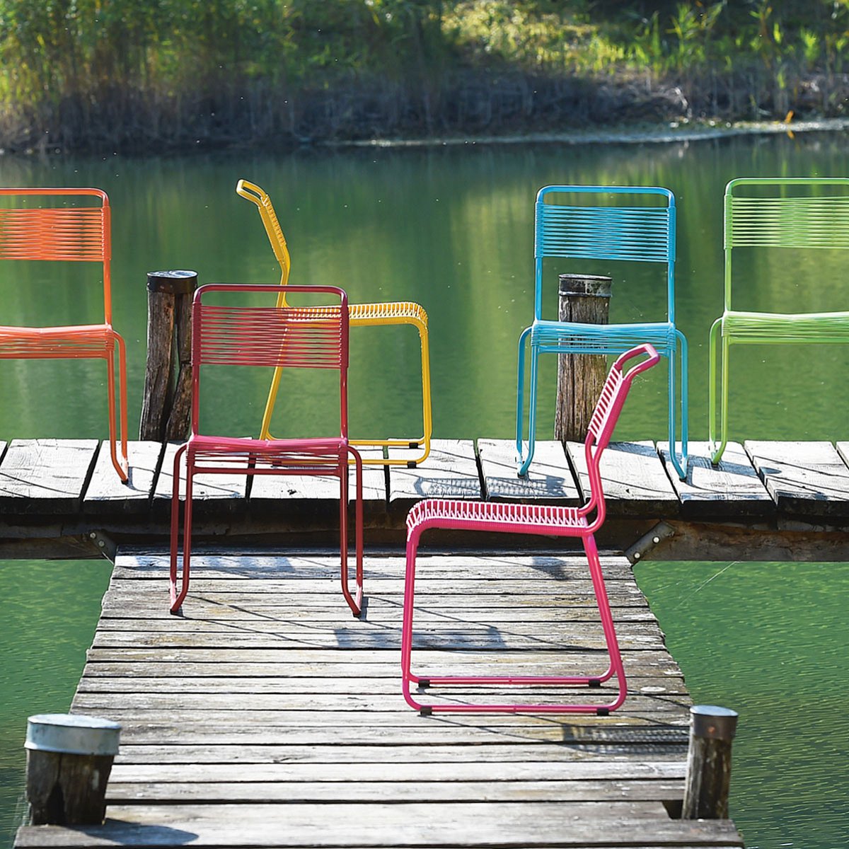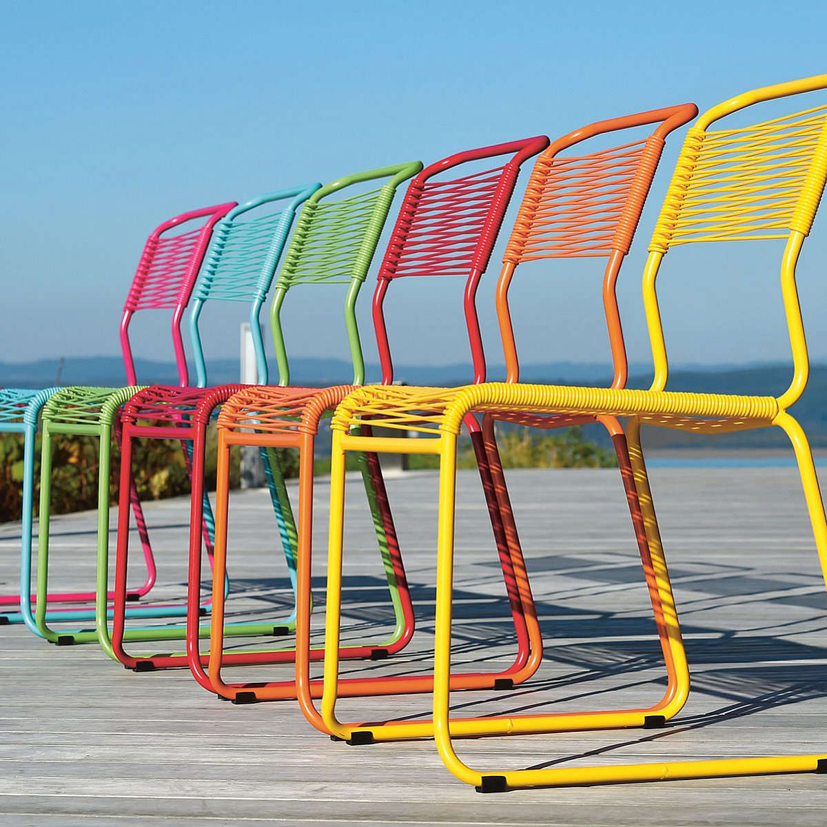 Trotz der Leichtigkeit sind die filigranen Stühle sehr stabil und mit der Spaghetti Bespannung aus PVC-Schnur ist die Sitzfläche bzw. Rückenlehne außerordentlich komfortabel. Durch die robuste Wetterfestigkeit ist der Stuhl auch einfach zu reinigen.