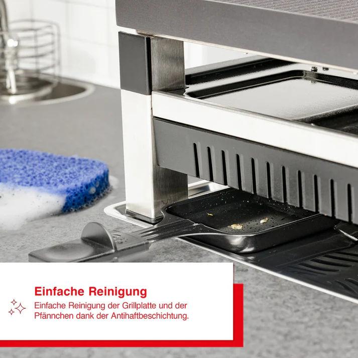Einfache Reinigung der Grillplatte und der Pfännchen dank der Antihaftbeschichtung.