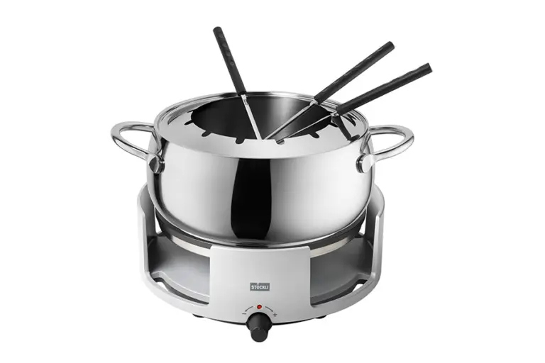Die STÖCKLI Avalon Fondue-Garnitur ist die ideale Kombination aus Elektro-Rechaud und Fonduetopf. Mit dieser Kombination können Sie Ihre Gäste perfekt mit der berühmten Schweizer Spezialität bewirten. Ein Spritzschutz sorgt dafür, dass die Kleidung Ihrer Gäste sauber bleibt und mit insgesamt 12 Aussparungen für Fonduegabeln eignet sich die STÖCKLI Avalon Garnitur auch für eine größere Gesellschaft.