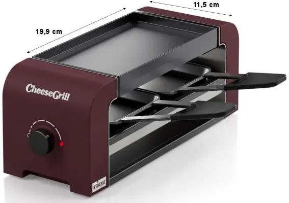 Der mit zwei antihaftbeschichteten Stahlblech-Pfännchen und zwei Raclettespachteln aus Kunststoff ausgestattet CheeseGrill ist ein Muss für die Küche. Einfach aufstellen, anschalten und den geselligen Raclette- und Grillabend genießen.