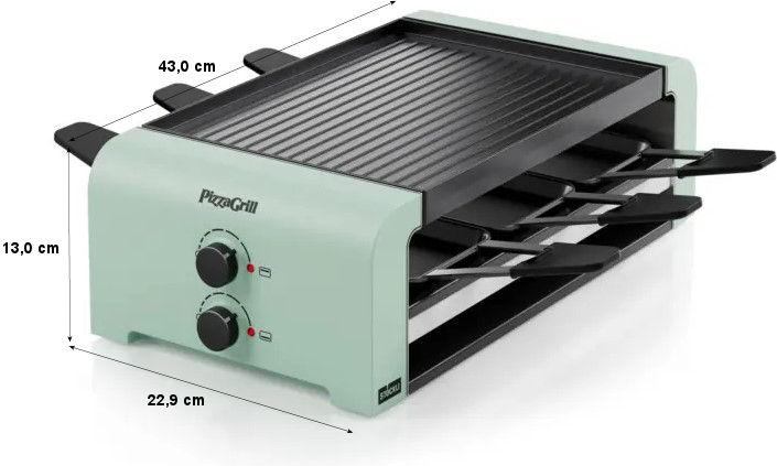 Tischgrill für Pizzas, Raclette und mehr. Mit Ober- und Unterhitze-Reglern und Parkdeck. Für 6 Personen.