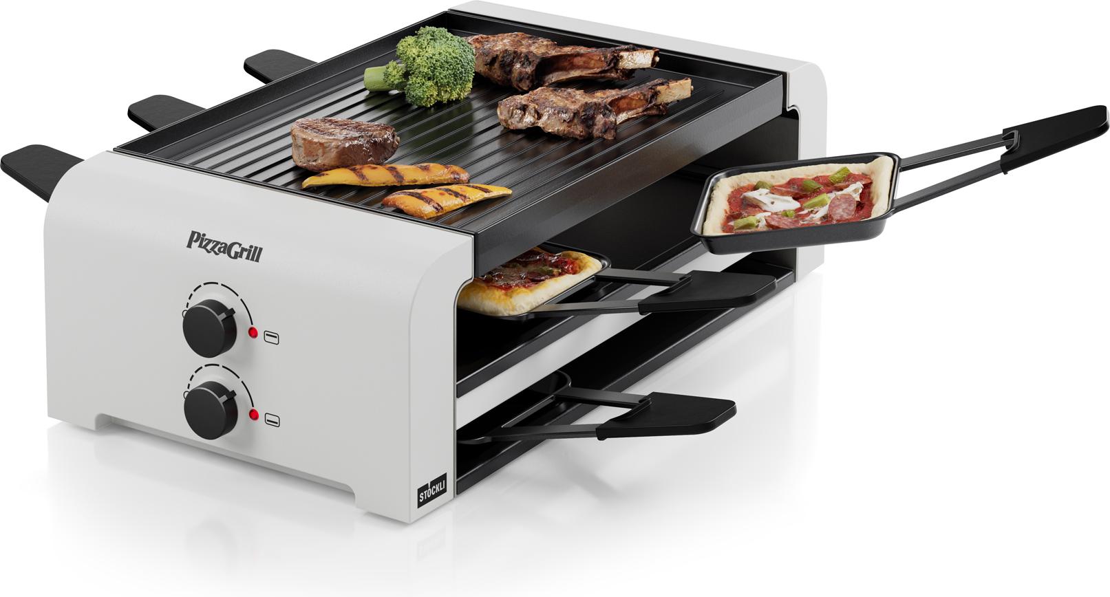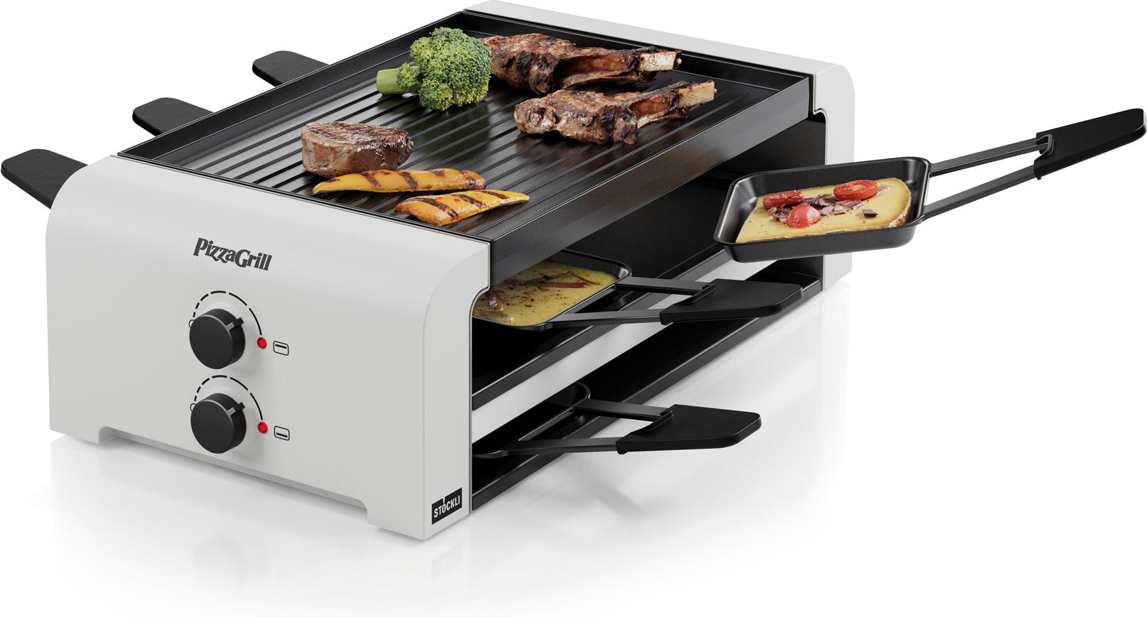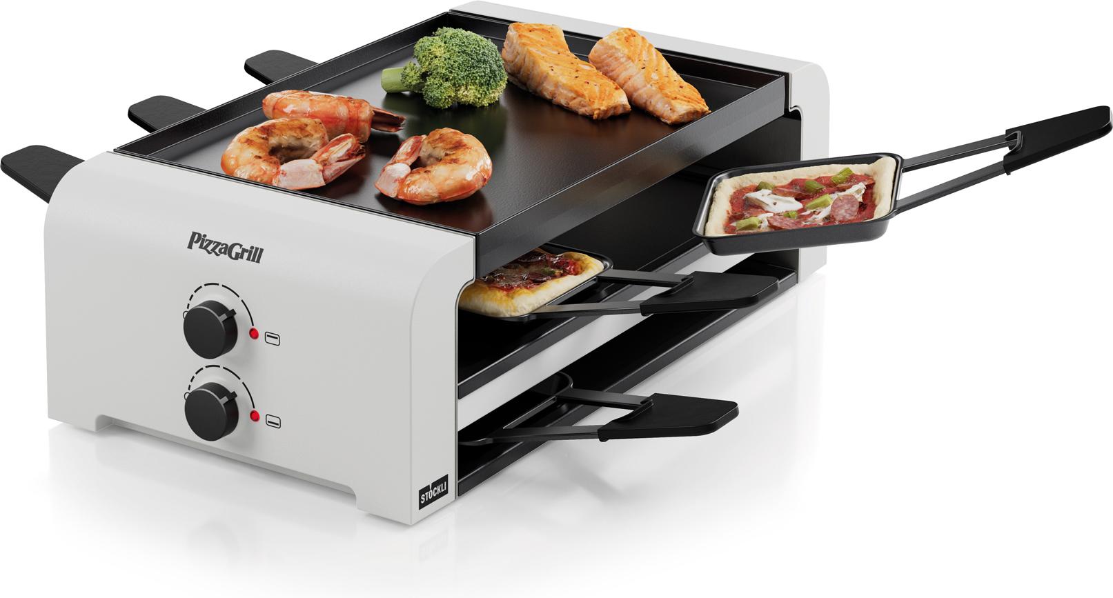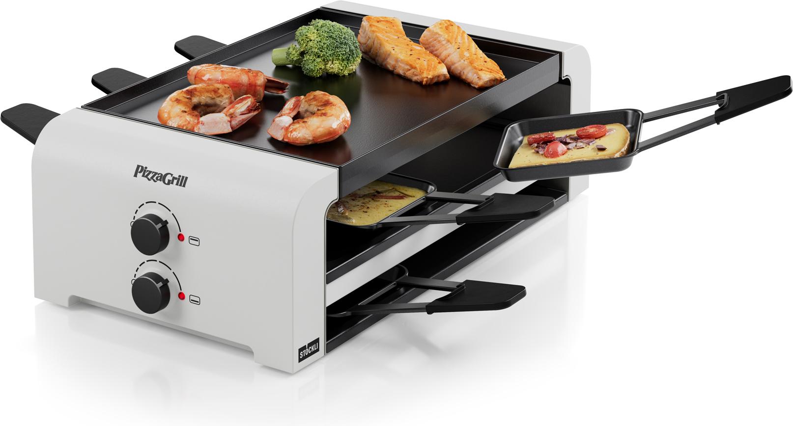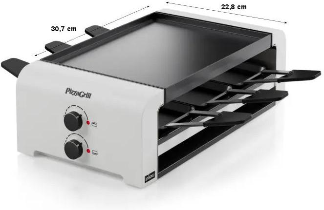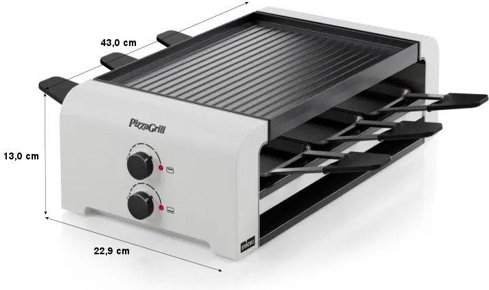 Tischgrill für Pizzas, Raclette und mehr. Mit Ober- und Unterhitze-Reglern und Parkdeck. Für 6 Personen.
