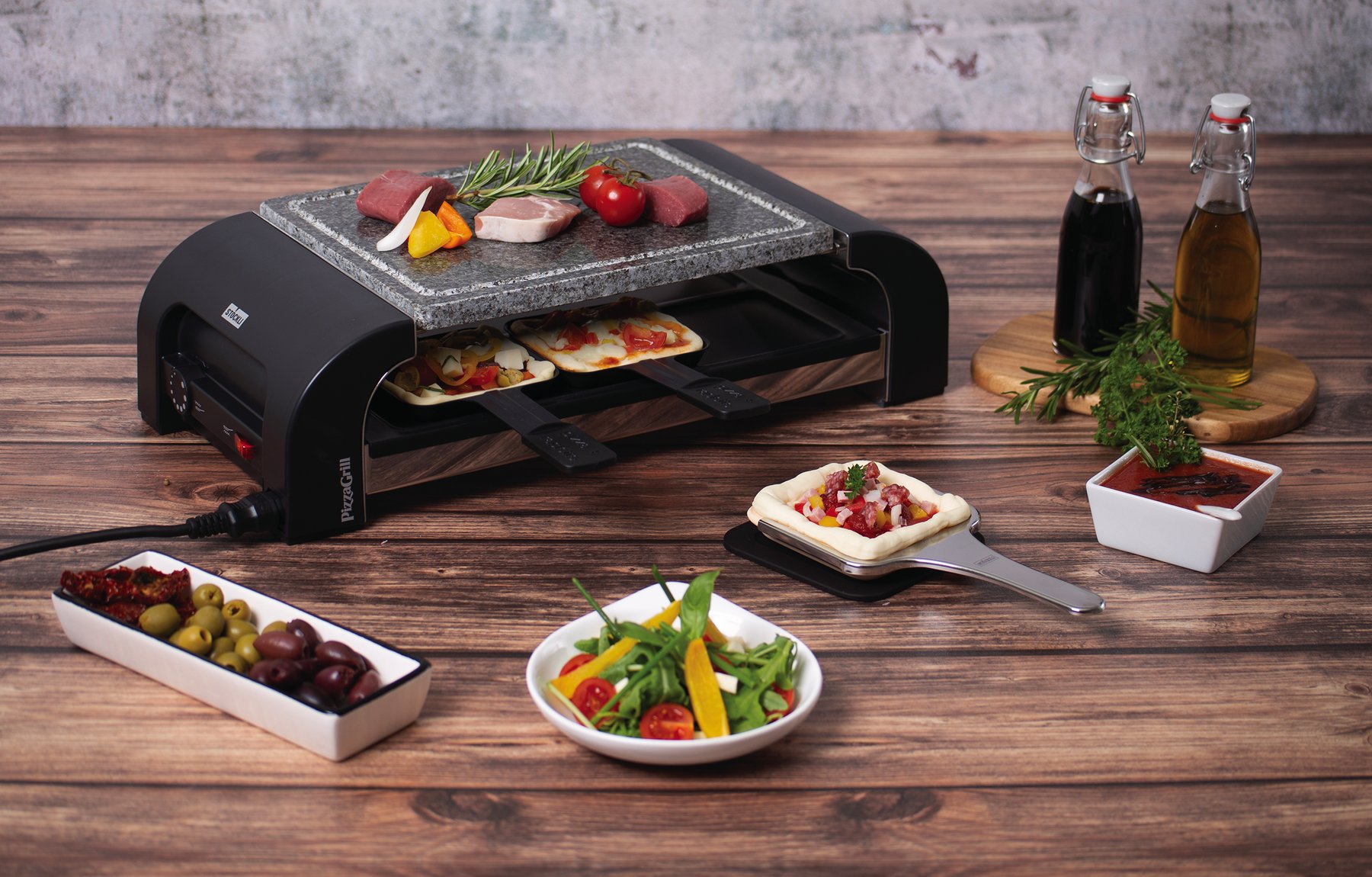 Naturstein für den PizzaGrill for6 Hot'Stone verfügt über einen Tropfschutz am Rand.