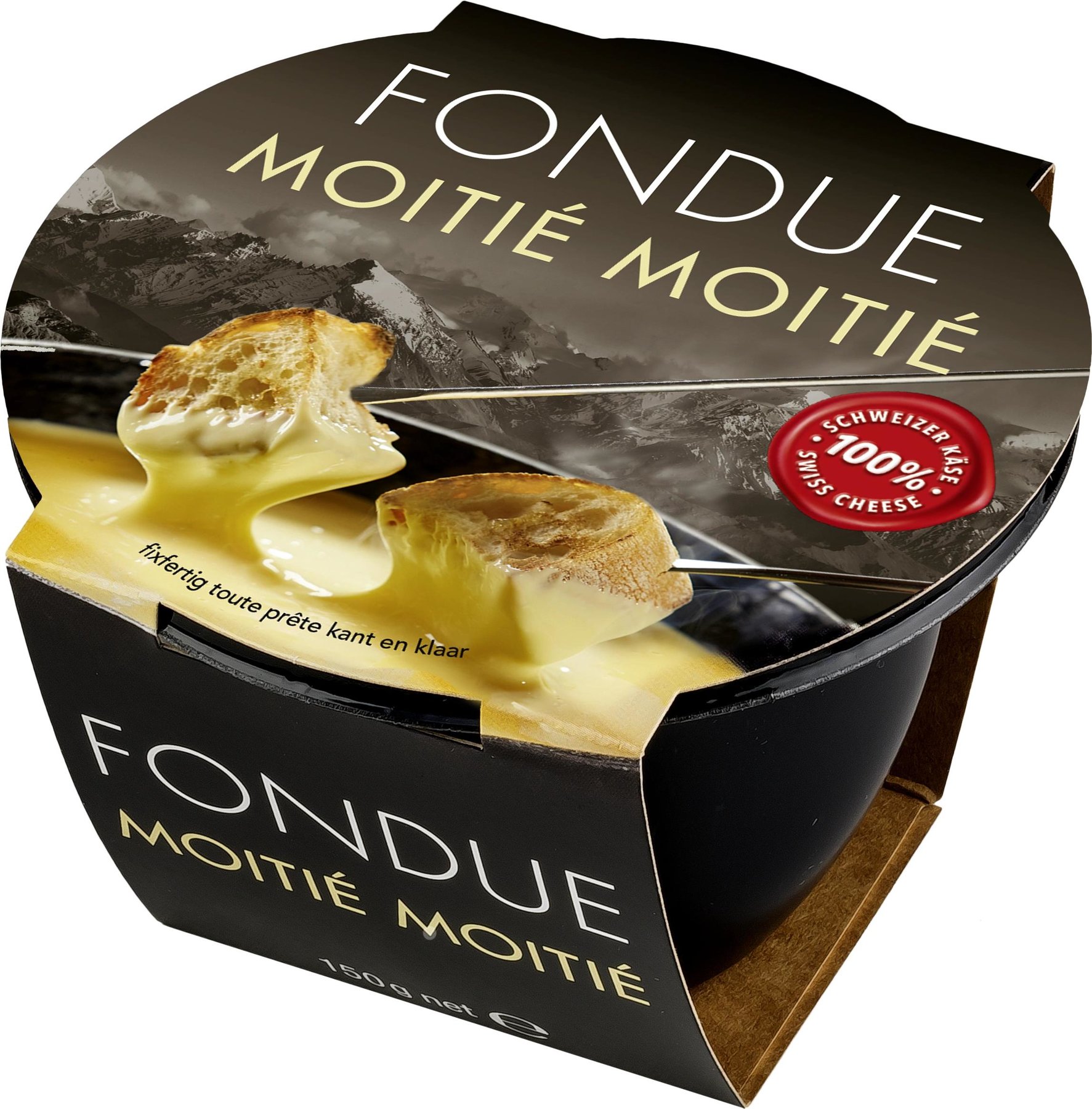 Nicht nur das Wort moité moité klingt wie ein Genuss, auch die Mischung ist einer. Nach dem traditionellen Westschweizer Rezept mit 50% Vacherin Fribourgeois AOP und 50% Le Gruyère AOP wird dieses Fondue besonders cremig. Ein Genuss, der sich niemand entgehen lassen sollte!