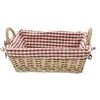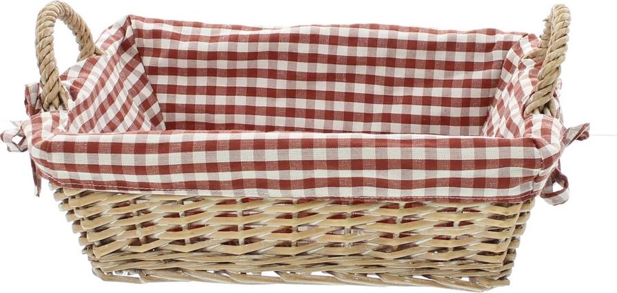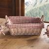 Brotkorb in trendig rustikalem Karodesign, weiß gekalkte und stabil geflochtene Spaltweide. Herausnehmbarer Stoffeinsatz in nostalgischem Rot/Weiß.