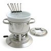 Dieses vielseitige Fondue verfügt über einen Keramikeinsatz, der als Doppelkocher fungiert. Dadurch können Sie ein Fondue für drei verschiedene Arten von Fondues verwenden - Fleisch, Käse und Schokolade.