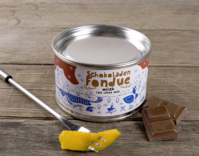 Schokoladenfondues von Taucherli, geeignet für zwei Personen. Kann auch zum Wandern mitgenommen werden: Der Dessert-Knaller auf jedem Lagerfeuer!