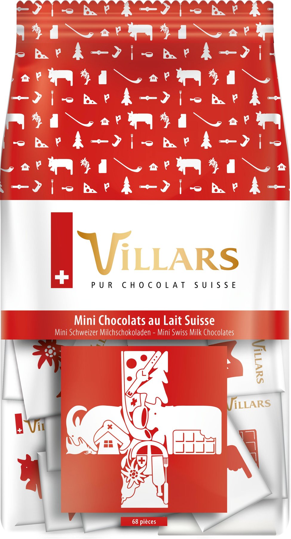 Villars Beutel mit mini Schweizer Milchschokoladen.