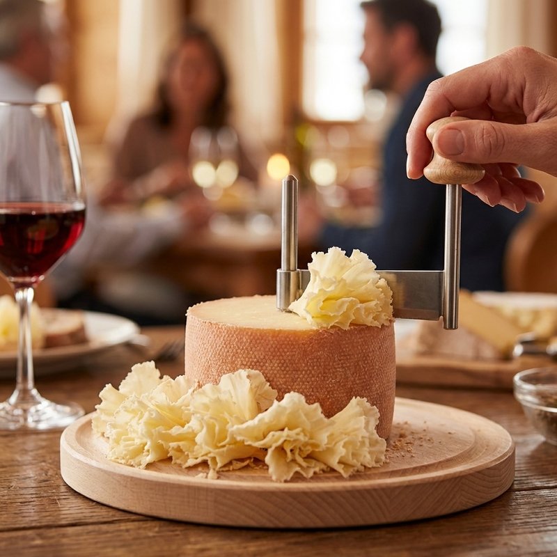 Wer seine Gäste (und sich selbst) wirklich beeindrucken möchte, setzt beim Käse auf Inszenierung. Statt liebloser Würfel serviert man in der Schweiz hauchzarte Käserösli. Das gelingt am besten mit dem Original Girolle-Bundle. Der dazugehörige Tête de Moine AOP wird dabei nicht geschnitten, sondern mit der Girolle geschabt.